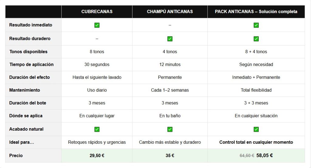 Polvo compacto con acabado natural e indetectable que disimula las canas de manera temporal hasta el siguiente lavado. Viene con esponja integrada y está disponible en 8 colores. Su fórmula es resistente al agua y al sudor. Mantenimiento: diario.